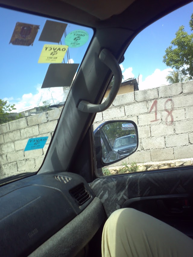 Edphort took a tap-tap and met us half way there to show us the way. (As if we couldn’t have found it … Turn at the tin shack by the red broken down car… follow the dirt road to the third large pothole, then turn right… ) It was very nice of him to take the time to do that. When we were almost there, he turned timidly to us and said, “Excuse me, but I don’t own any chairs for you to sit on.” It was very sweet of him, and of course we said no problem.