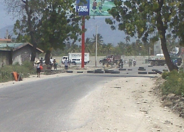 Asher was hit with a rock to the chest – not hurt. John Meadth was hit with a rock to the arm and bleeding. The guys were a bit manhandled and forced to get off the bikes. John asked ‘P’ to re-enter the barricade on foot to see if the rebel’s would release the three guys. ‘P’ & Luji explained to the rebels that we were here helping Haiti and are not involved in this fight. After the rebels realized this they let the three men and two bikes go. Unfortunately John’s bike was still nowhere to be found.