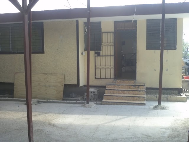 Not a moment after seeing the police officer and the judge enter the house I see a guy exit the other side.  I shout up to him in Creole, “Mesye” (meaning “mister”).