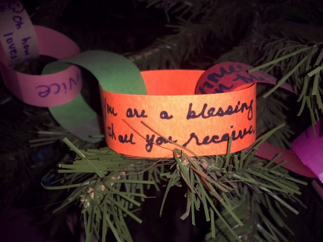 It was also our first Thanksgiving with complete strangers. The group, Visiting Orphans, was staying at the GH during the week. We loved getting to know them. They had hearts of service, were appreciative of everything, and were so encouraging. They gave all the 8 workers a gift bag of different things. Then they made a paper chain around our x-mas tree! Some chains had Bible verses, others had words of encouragement. Some phrases on the chain: You are such a blessing to many, You have an inheritance, Thanksgiving dinner ROCKS (and every other meal too!). Thank you Visiting Orphans for the encouragement!