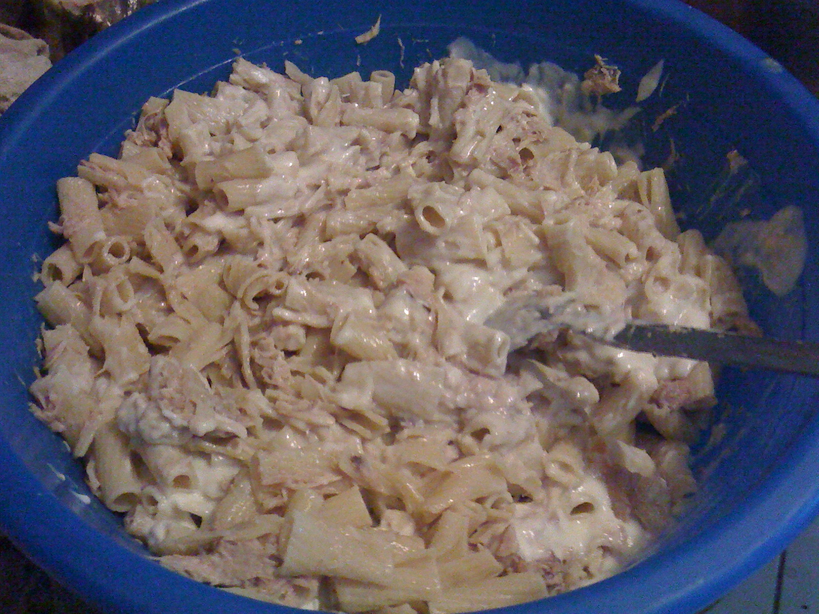 Add about 2/3 cup mayonnaise and stir well. Taste and if it still needs more flavor, you can add salt and/or a small part of a crushed chicken bouillon cube.