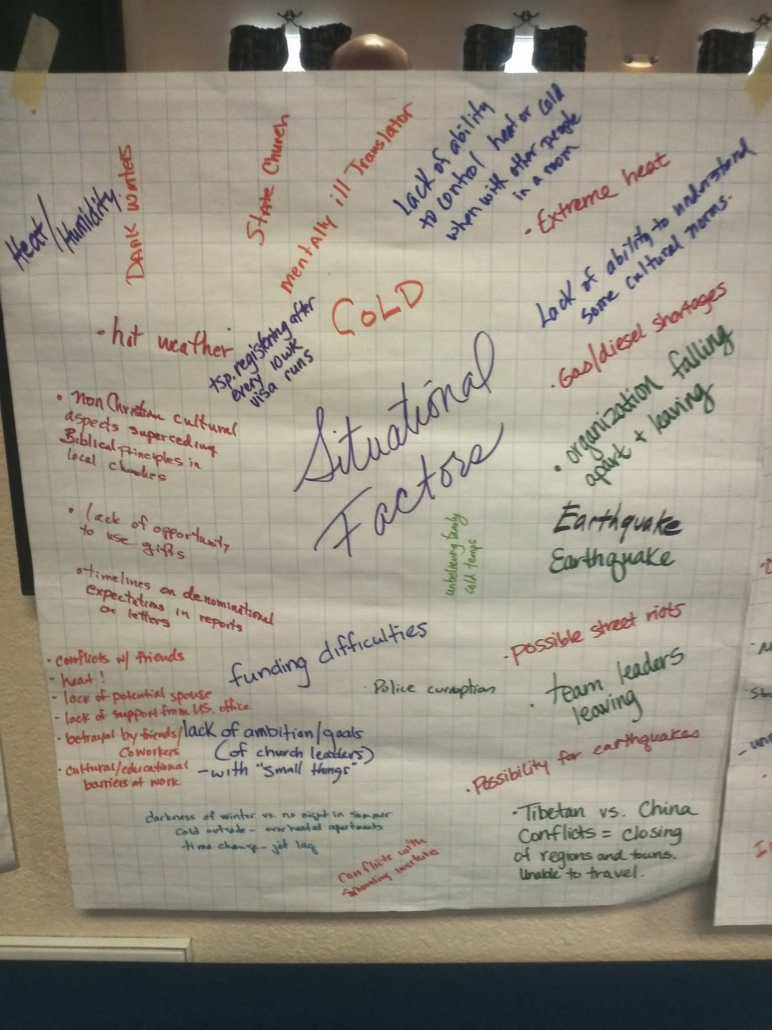 We talked about different types of stressors and took self-tests to evaluate our stress (holmes and rahe stress scale, headington, etc.).  What I found most interesting during this section was the similarities we had with other missionaries as we wrote out different aspects of stress.  It is important to evaluate because unmanaged high stress causes burnout which can lead to depression.